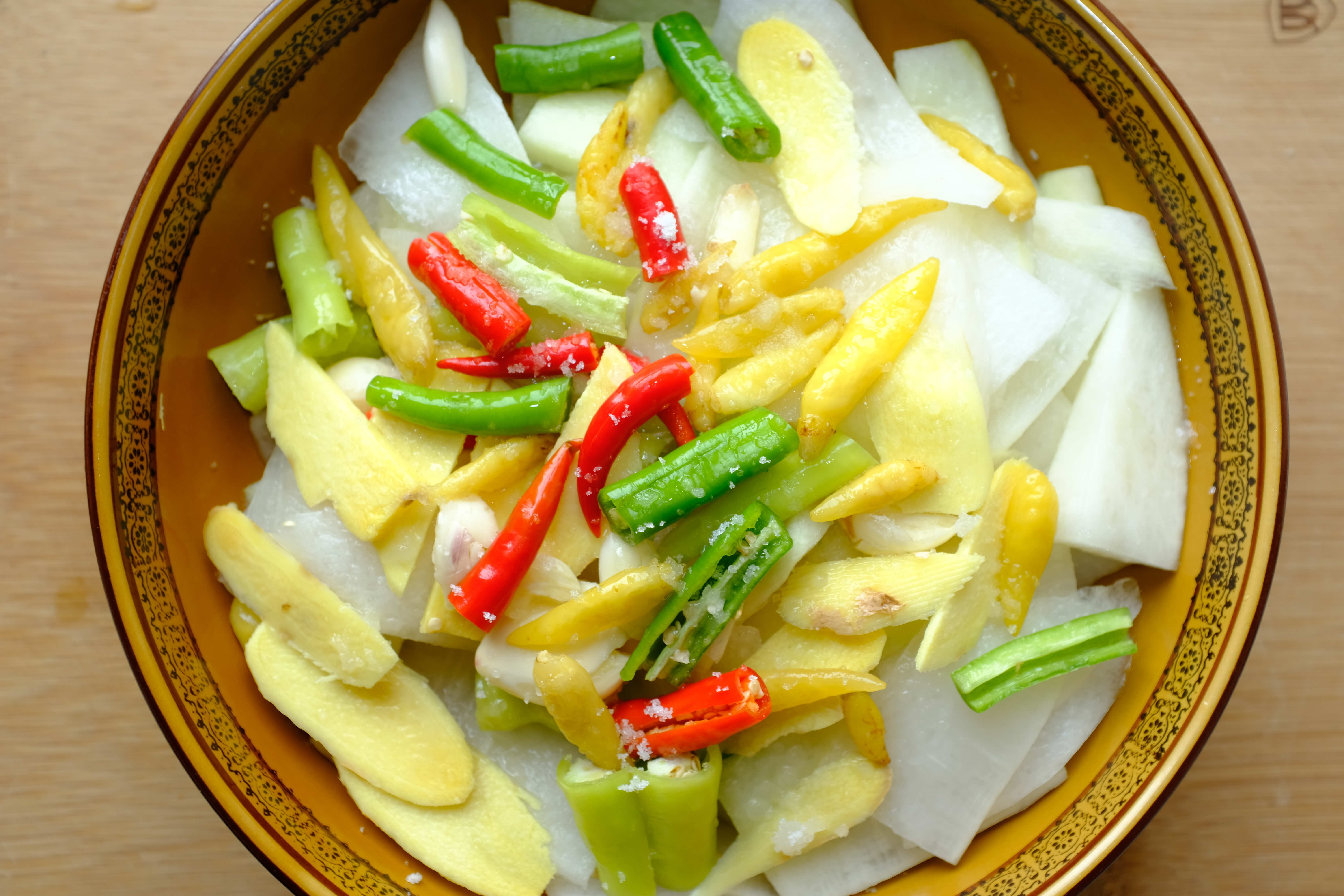 腌萝卜,我是认真的。用了4种辣椒,一勺酱香型的白酒。