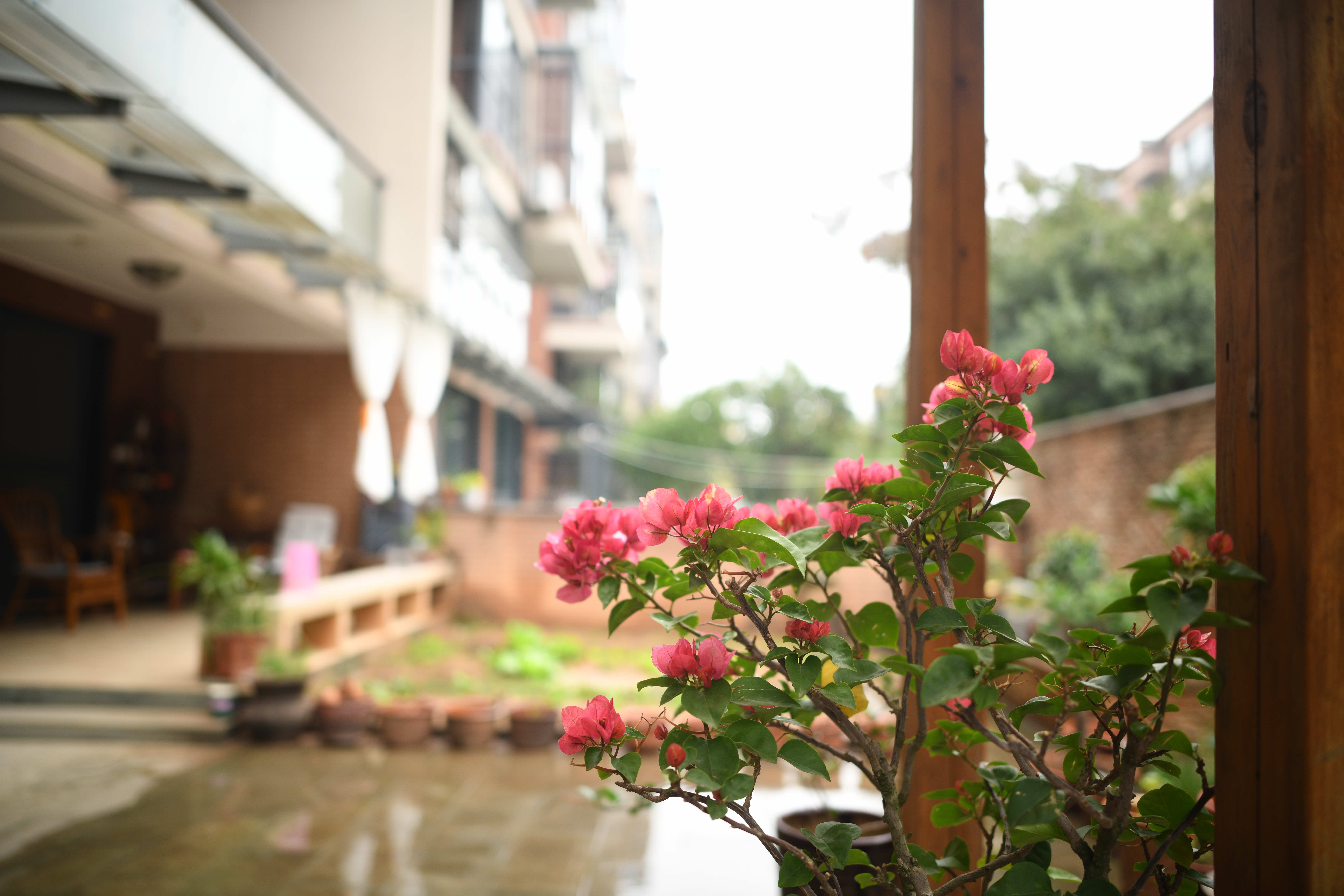时有微雨,满园滋润。终日端居,自在不隔。