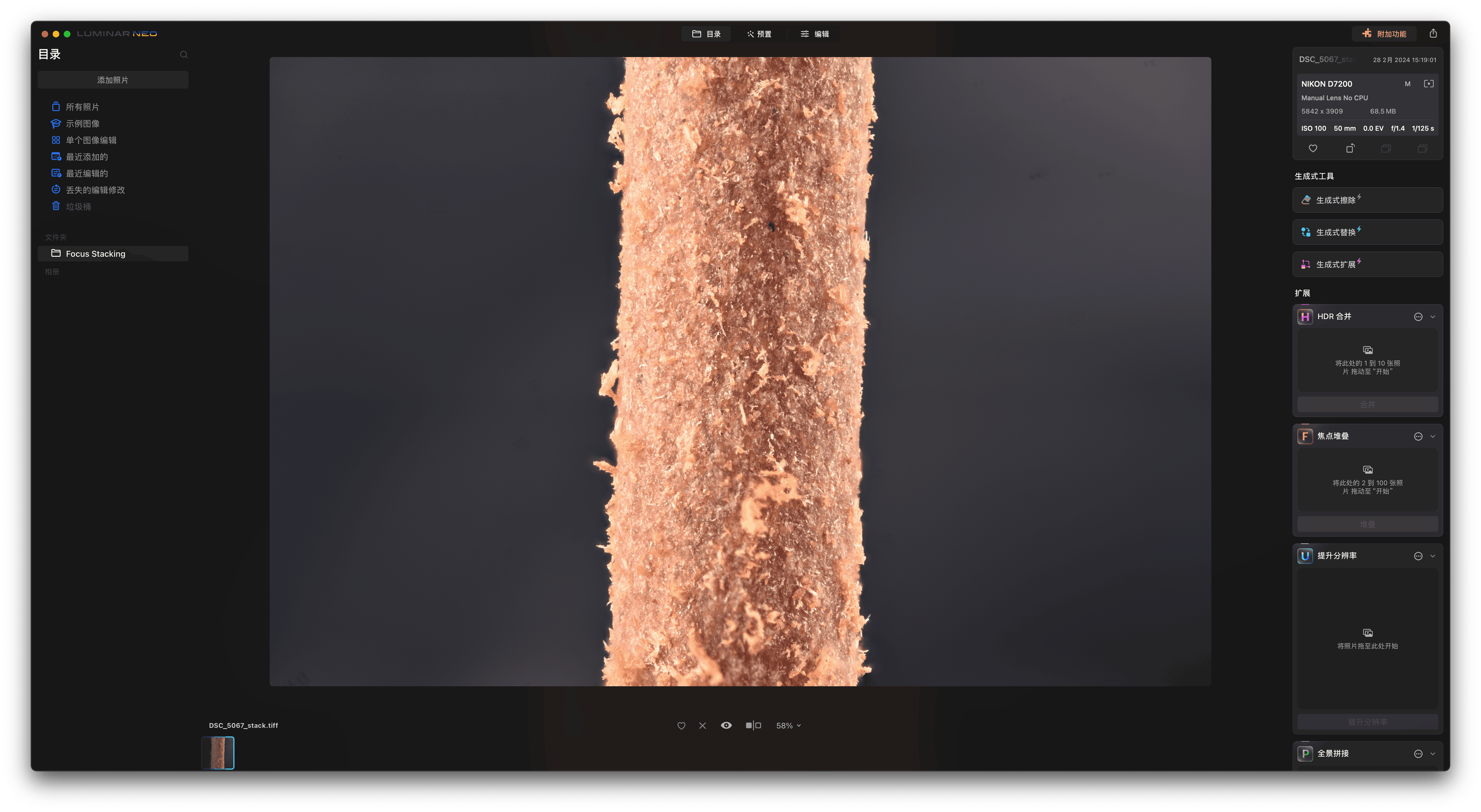 一炷印度香,直径2mm,2倍放大,对叠成像。工具:1、老蛙25mm微距镜头(2倍放大率);2、超微电动堆叠导轨(1微米精度);3、狂人闪光灯(3头);4、使用Lumina Neo进行焦点对叠。这种操作,5倍以内,难度极低。10倍、20倍或50倍需要显微镜,另需重型利器(以后上图)。超微距摄影,设备和技术都没问题,缺的是好的标本。据说,一只0.2㎜的蚂蚁标本需要3000大洋,愁煞宝宝。